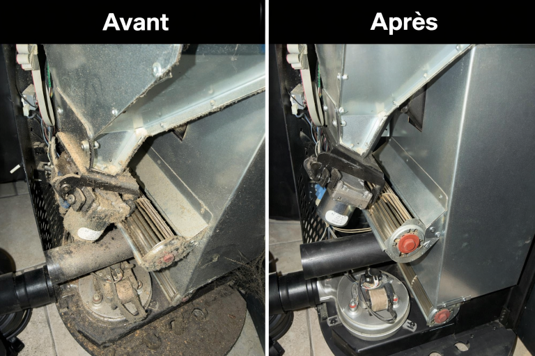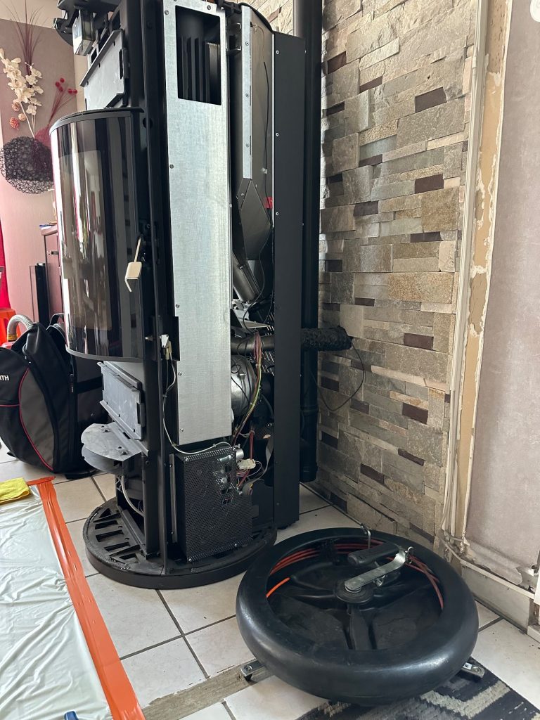 Photo d'un entretien en cours sur un poêle qui à 7 ans entretenue par nos soins